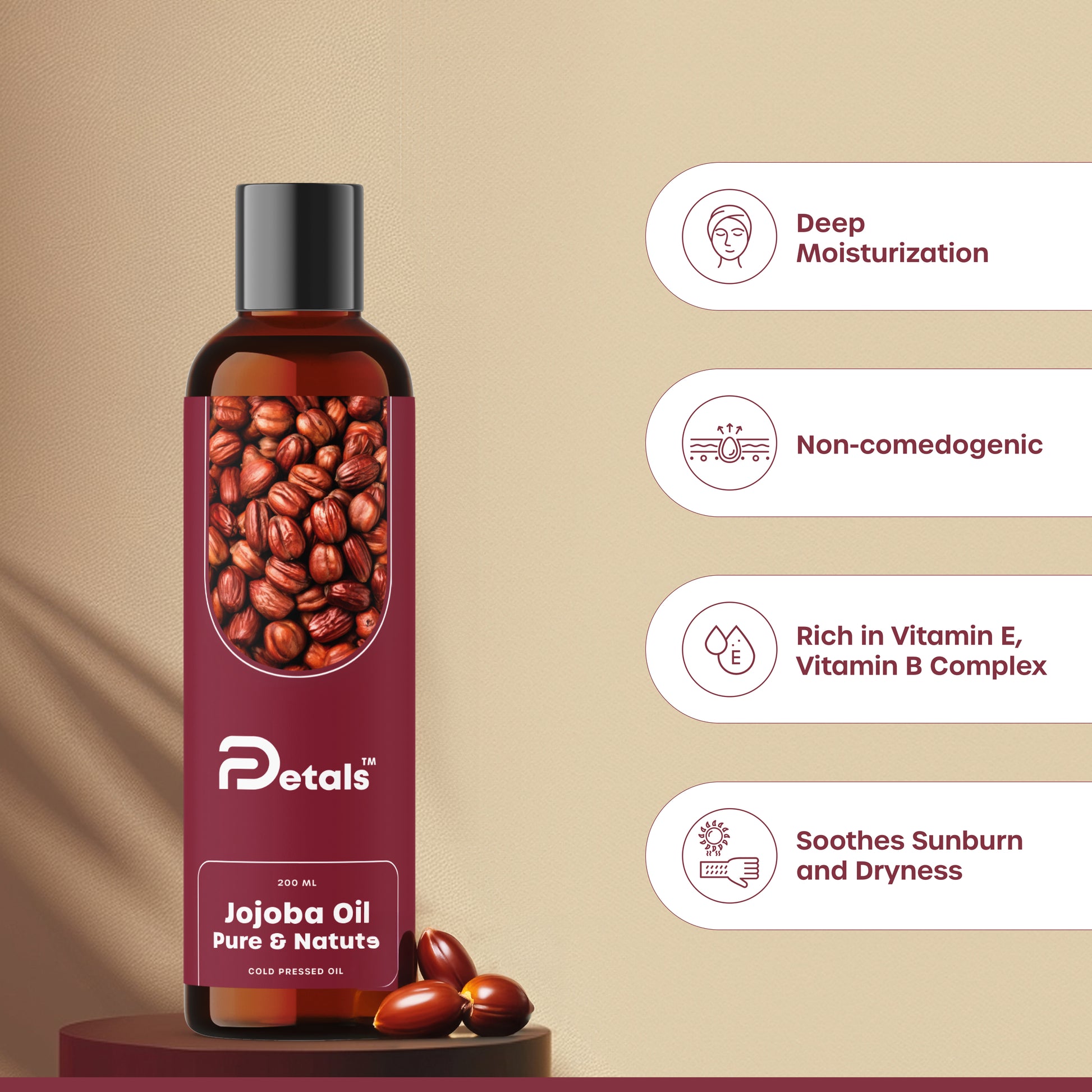 - Cold-Pressed Extraction: This 200 ml bottle of Jojoba Oil is obtained through a cold-pressed extraction process, ensuring its purity and natural quality.