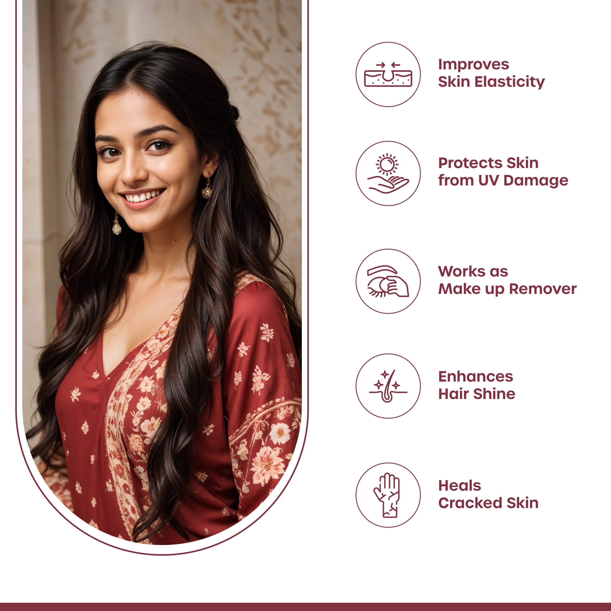 - Rich in Nutrients: Packed with essential vitamins and minerals like Vitamin E, Vitamin B, zinc, copper, and antioxidants, this oil nourishes and rejuvenates the skin and hair.